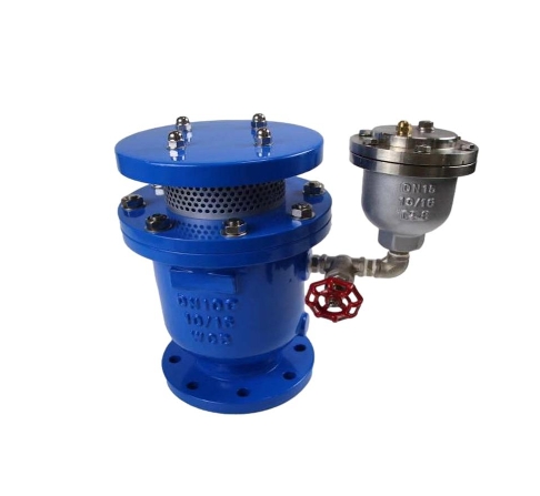 防水锤复合排气阀是一种专用于给排水管道的进排气控制装置。广泛应用于各种自来水厂的管网系统和各种供水领域。复合型是指既有大孔又有小孔的进气和排气功能的阀门。当空水管内充满水时,大排气孔自动将管内空气高速排出,防止空气在管内形成气穴,阻碍水流。当加压水在管道中运行时,由于压力和温度的变化,从水中析出的空气会产生空气阻力。这时,小孔会自动将气囊中的气体排出管道外。管道内出现负压时,能自动高速吸入空气,破坏真空,防止管道因负压而变得不稳定而损坏。管道排空时,能自动吸入大量空气,加快排水速度,缩短停水时间。还可以消除停泵引起的水锤造成的水柱破裂对管道的破坏。